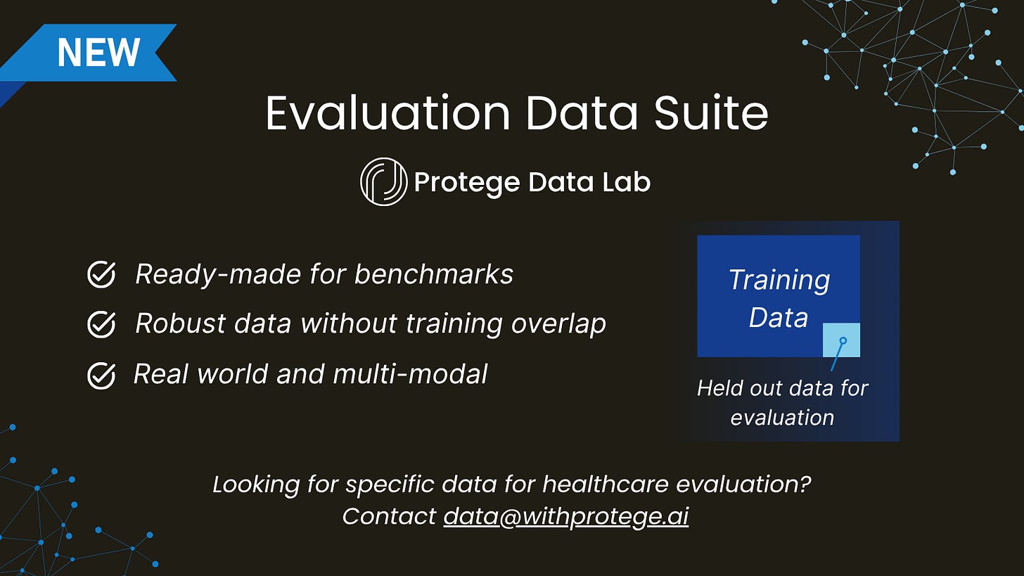 Protege sits at the intersection between healthcare data providers and healthcare AI model builders. Initially, this allowed us to become the single source of truth for healthcare pre-training, post-training, and fine-tuning datasets. Increasingly, AI model builders have worked with the Protege Data Lab for their evaluation and benchmark data needs.